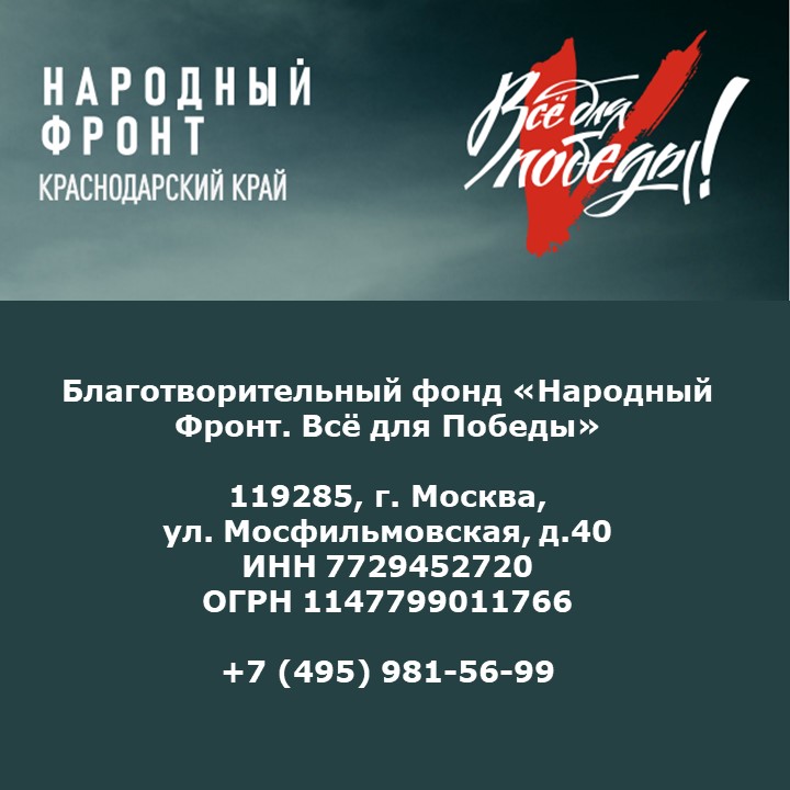 Все собранные средства перечисляются на закупку военного снаряжения, медикаментов, теплых вещей, квадрокоптеров и прочего для военных и добровольцев Краснодарского края.