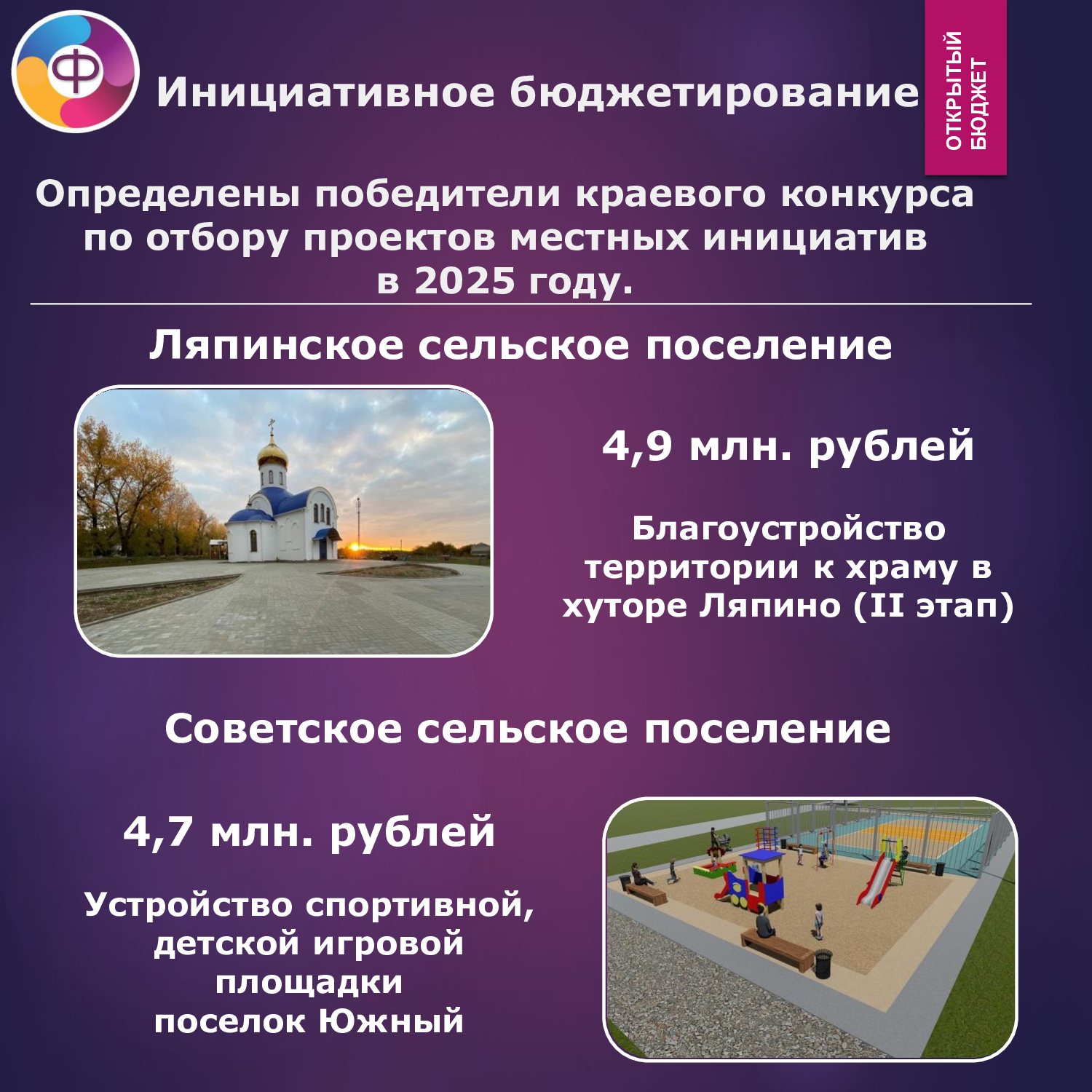 Согласно выписке из протокола заседания комиссии о проведении итогов краевого конкурса признаны победителями в 2025 году проекты Новокубанского района:
